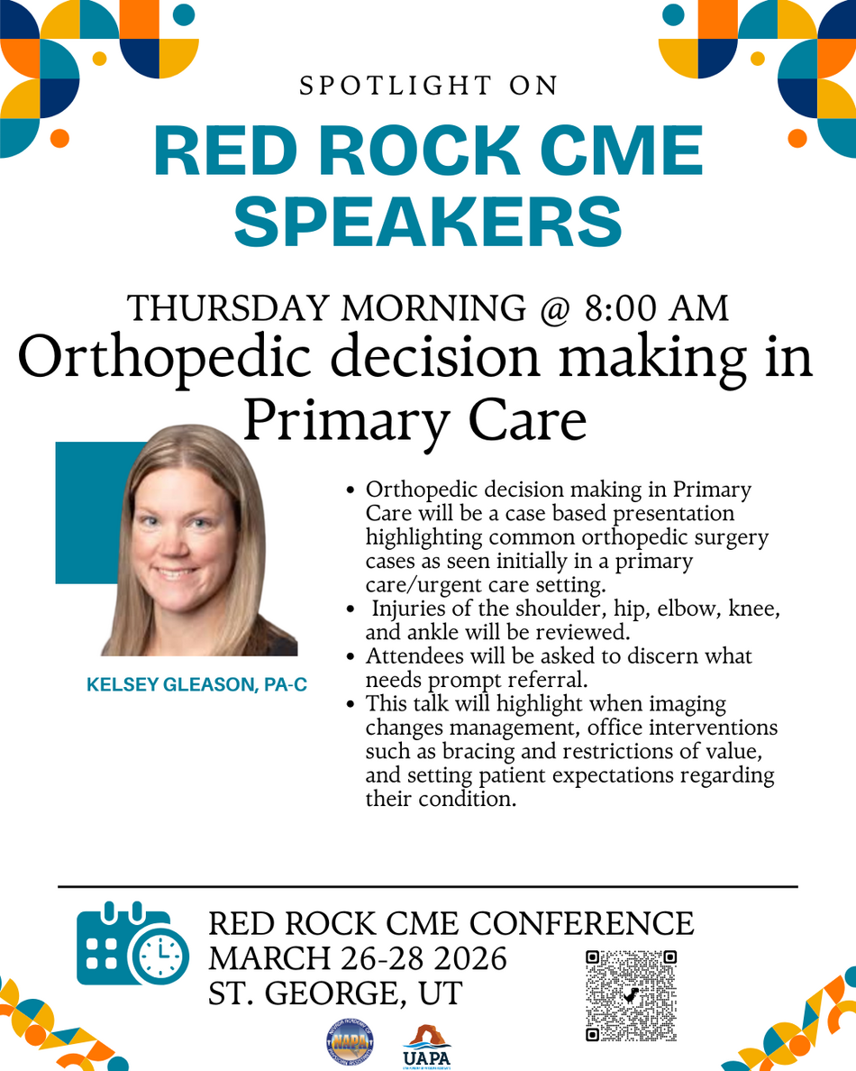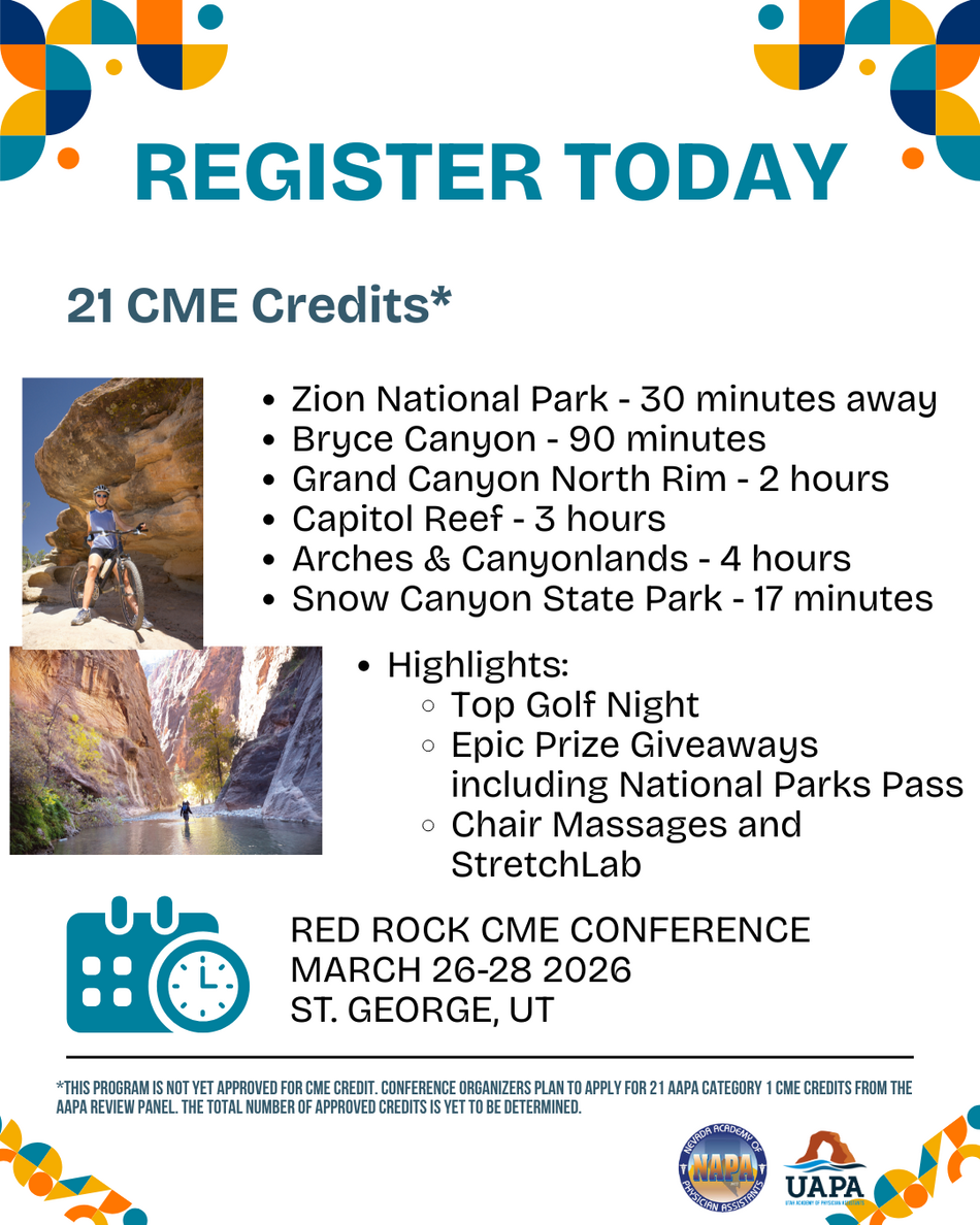 For more information about these sessions or the 2026 Red Rock CME Conference, please contact: utahapa.info@gmail.com