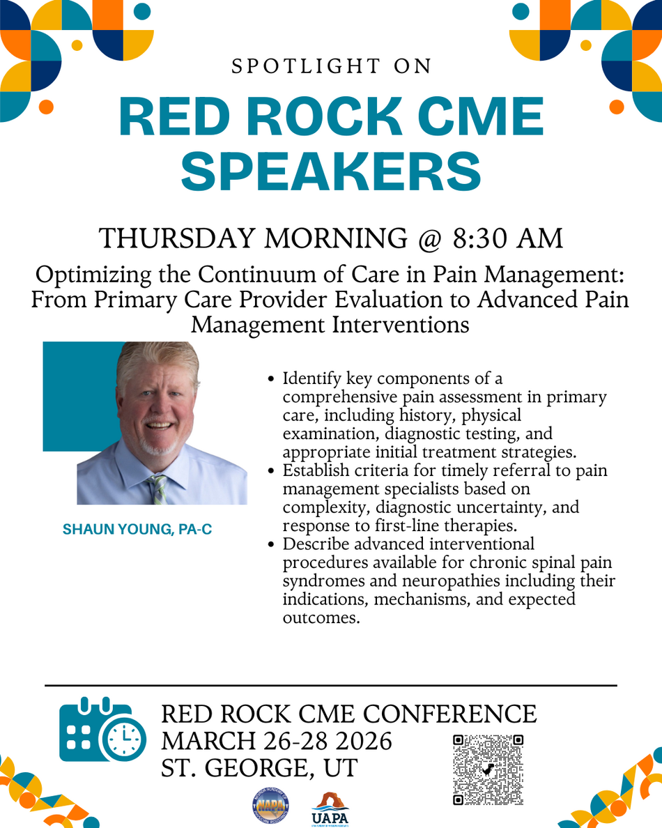 The Utah Academy of Physician Assistants is pleased to announce two complementary sessions addressing musculoskeletal medicine and pain management at the 2026 Red Rock CME Conference.