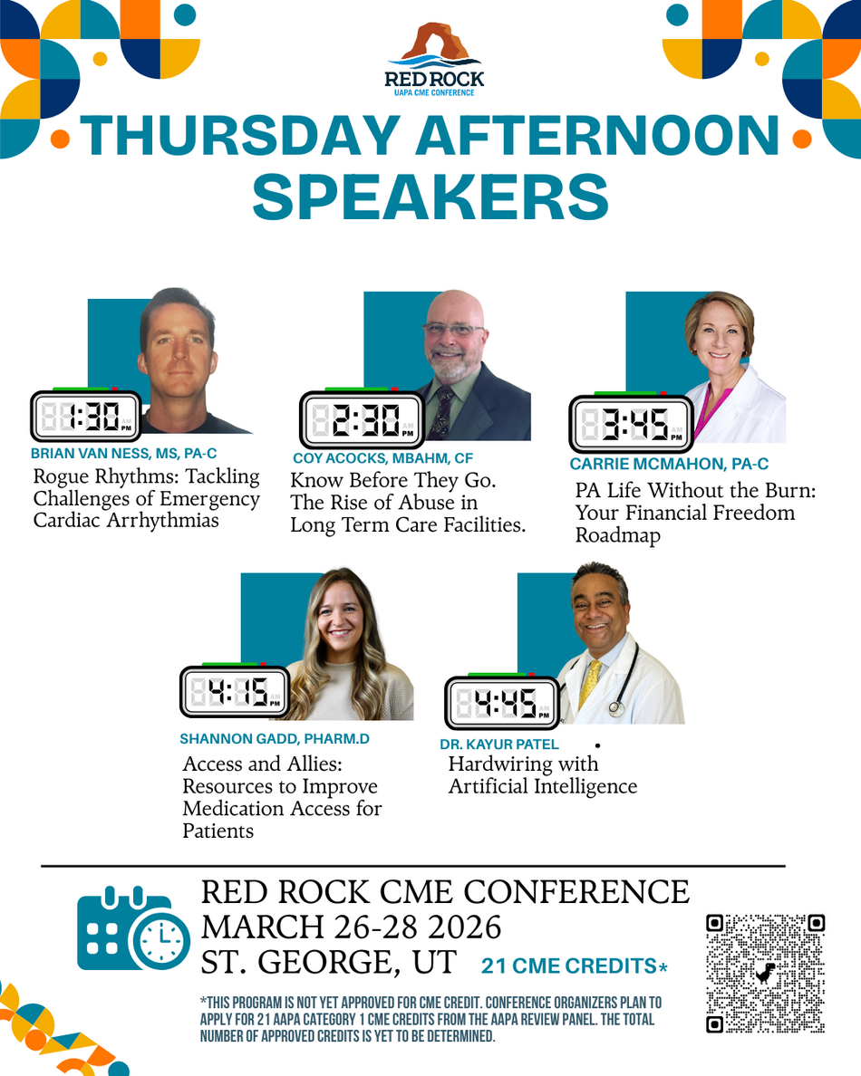 - 3:45 PM - Dual focus on PA wellness: financial freedom strategies (Carrie McMahon, PA-C) and improving medication access for patients (Shannon Gadd, Pharm.D)