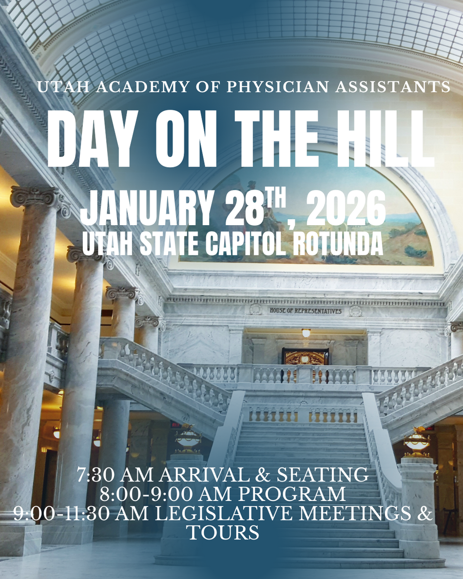 The Utah Academy of Physician Assistants cordially invites all PAs, PA students, and healthcare advocates to participate in our annual Day on the Hill at the Utah State Capitol.